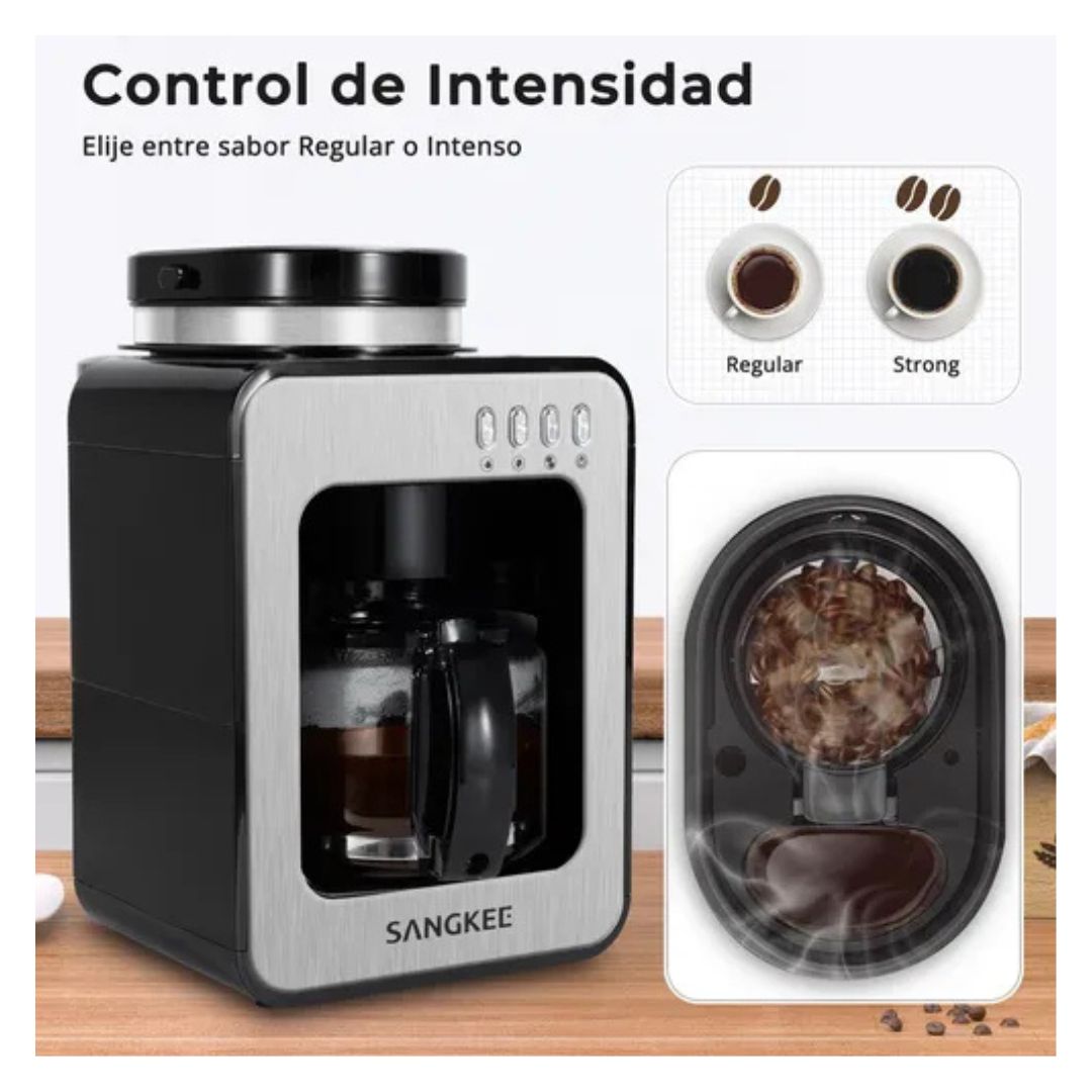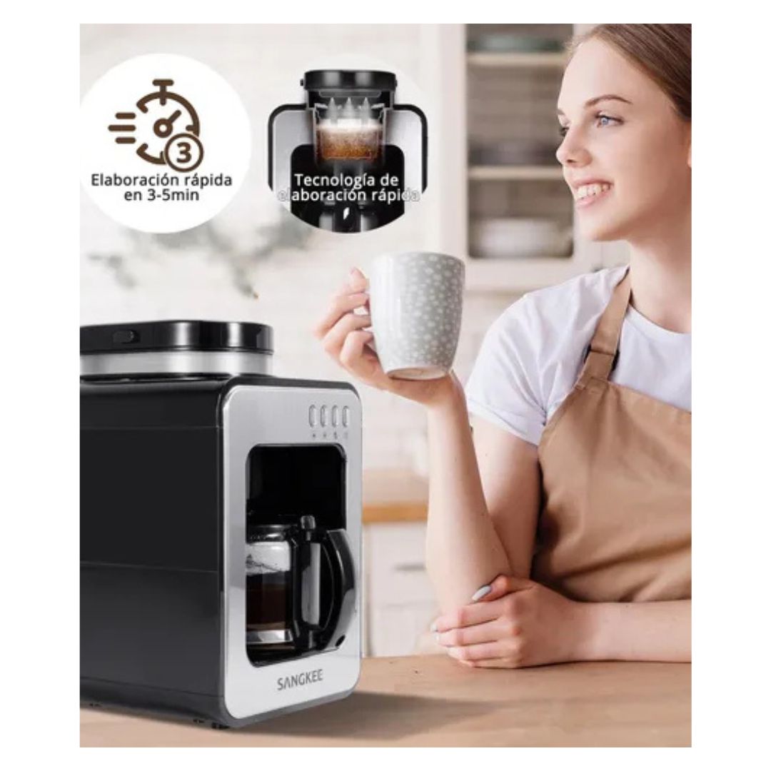 SANGKEE Cafetera De Goteo Automática Con Molino Integrado, Intensidad Ajustable, Preparación Rápida, Función De Conservación De Calor