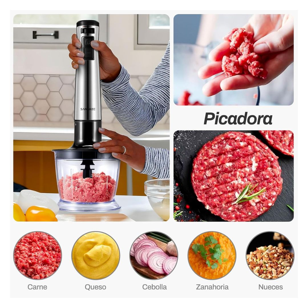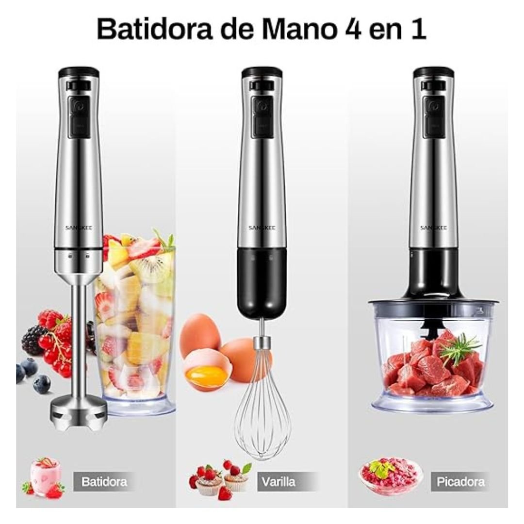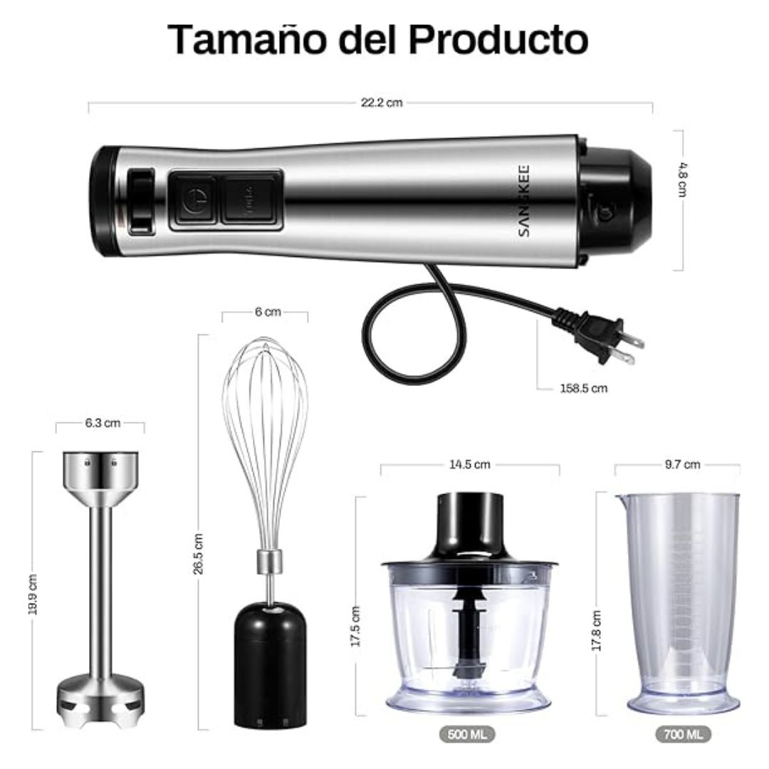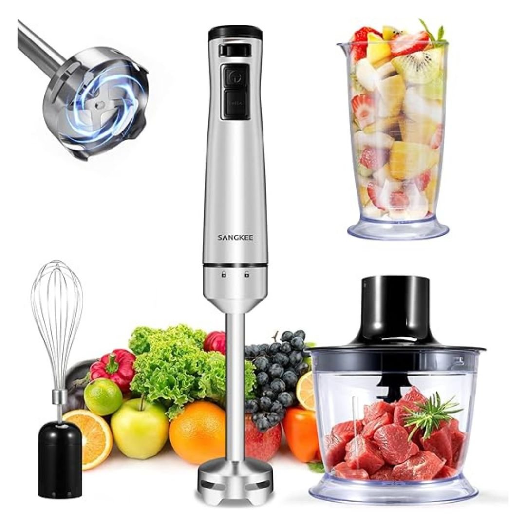 SANGKEE Batidora de Mano Inmersion, Licuadora de Mano 4 en 1, Variable Velocidad y Modo Turbo con Cuchillas de Acero Inoxidable, Picadora 500ml, Batidor de Huevos y Vaso Medidor 700ml, 500W