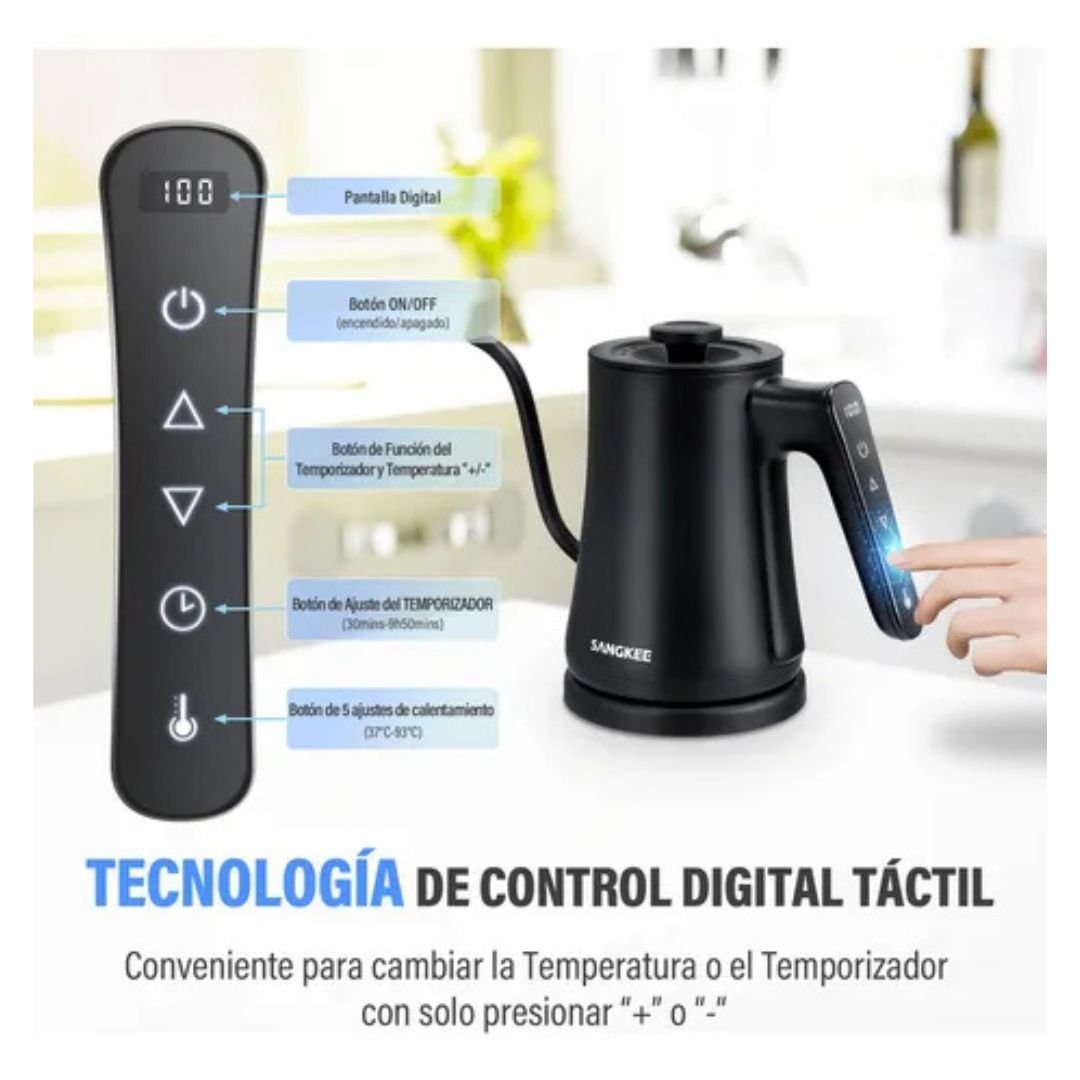 SANGKEE Tetera Hervidora Eléctrica De Acero Inoxidable Con Cuello De Cisne,Temporizador Y Control De Temperatura,jarra Portátil Para Café, Té Y Agua Hirviendo,calentamiento Rápido Y Auto Apagado, 1.2L